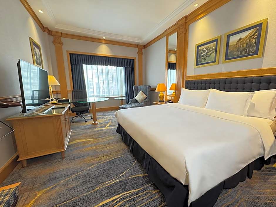 Spacious room features executive lounge access.